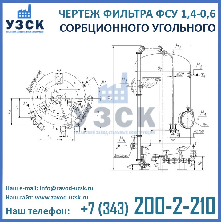 Если вы ищете фильтры ФСУ-1,4-0,6 в Домодедово от изготовителя, то Вы на правильном пути! Уральский завод стальных конструкций – непосредственный производитель сорбционных фильтров ФСУ, предлагающий самые выгодные цены на ФСУ-1.4-0.6 в Домодедово. По окончании процесса производства угольные фильтры проходят гидравлические испытания пробным давлением 0,9 МПа на аттестованном гидростенде, находящимся в собственности завода УЗСК. Мы гарантируем высокое качество выпускаемой продукции, и в этом уже убедились ведущие предприятия промышленного сектора России и стран ЕАЭС (см. раздел «Наши клиенты»).